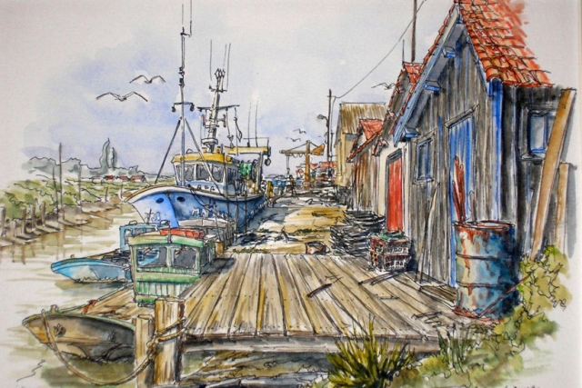 signes de pistes et des Bob Morane chez Marabout... Ensuite, la mer est devenue mon métier. De là viennent mes influences et l’admiration que je porte au réalisme artistique des aquarelles et croquis de Marin-Marie, peintre de Marine. Puis j’ai onnu la Beauce et sa mer de blés. J’ai été subjugué par le chantre de ce pays, Jean Feugereux et ses esquisses aux cieux pleins de lumière. Dans mes dessins, j’associe l’encre à l’aquarelle afin de permettre de prolonger la finesse de la plume par la vivacité des couleurs... technique qui délivre une multitude de détails et de précisions invisibles, traduction du réel, du vrai, du beau...
