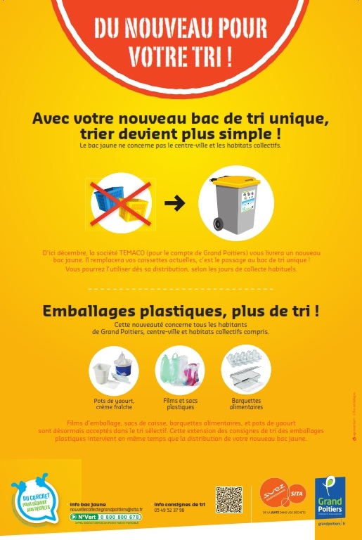 Un nouveau guide du tri et de la prévention des déchets est à disposition des habitants à la mairie ou sur le site : https://www.grandpoitiers.fr/au-quotidien/dechets